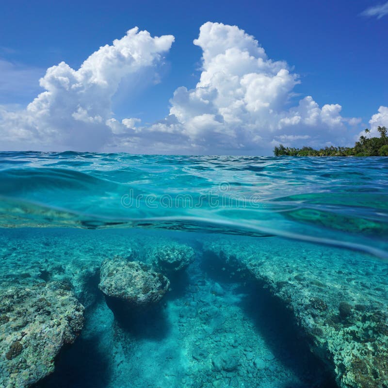 바다속 수준 높게에 있는 컬러풀한 산호 군체들이 환하게 보이는 꿈
